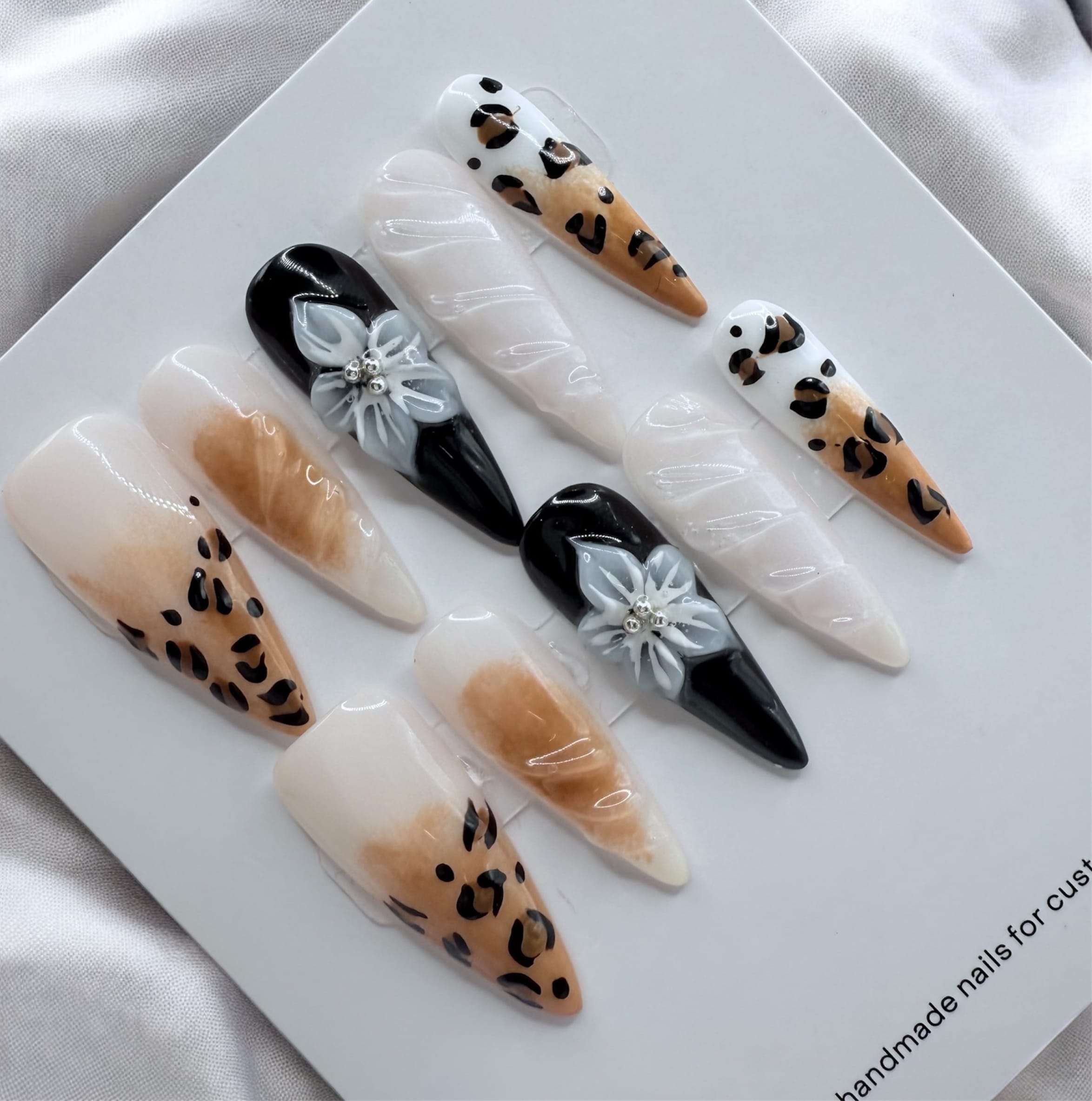 $12.99Leopard Print And 3D Flower Stiletto Nails