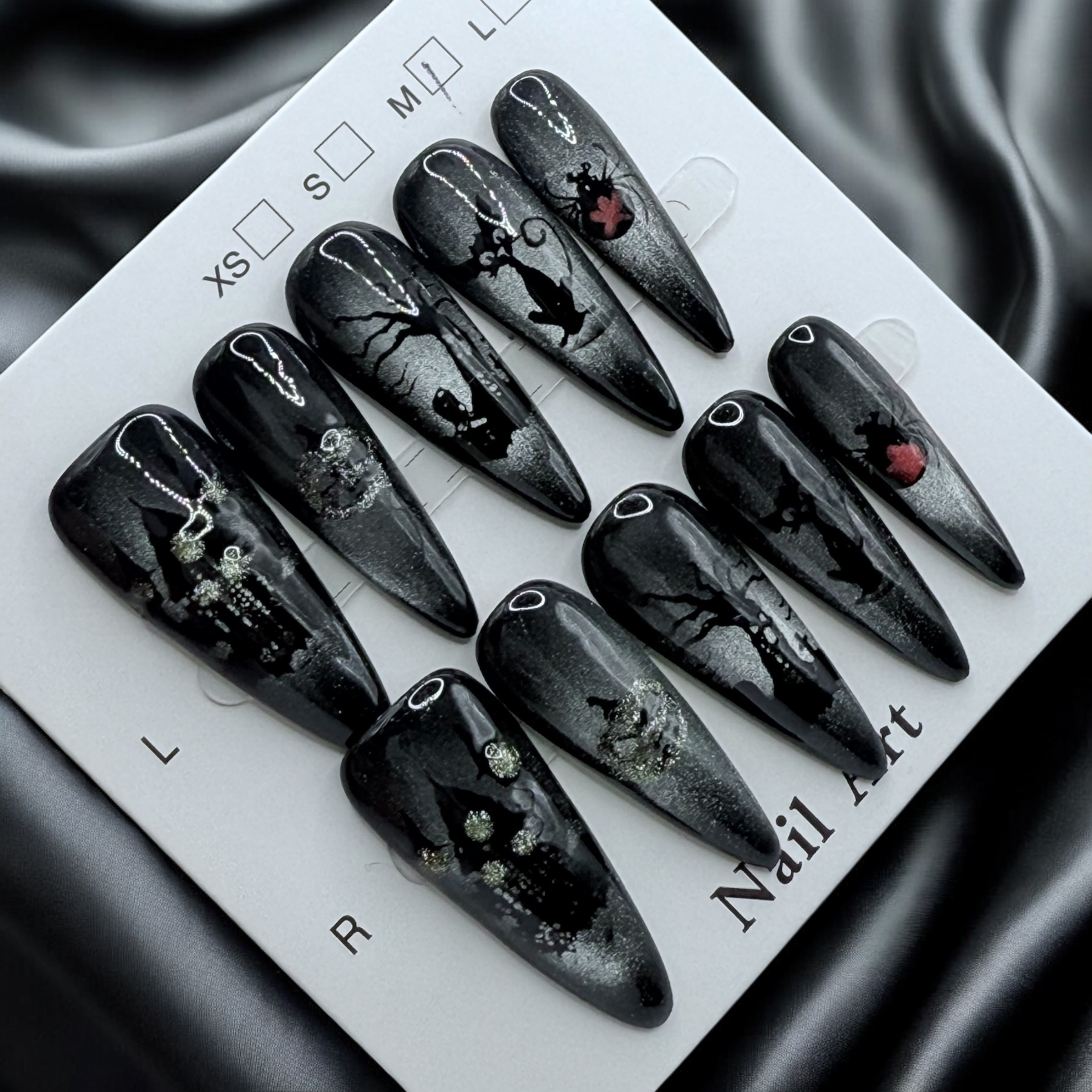 Halloween Cat’s Eye Square Nails Spooky Cats
