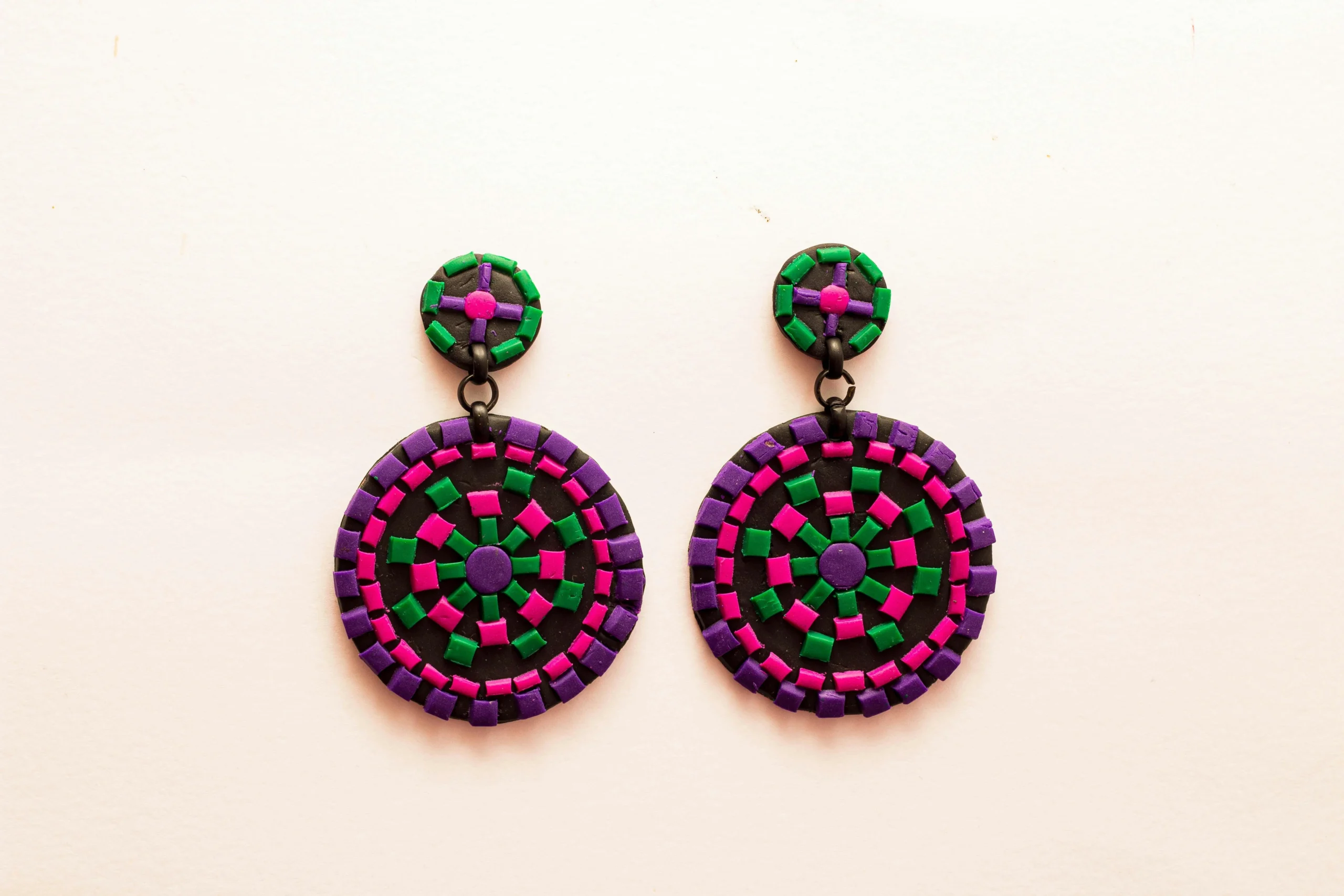 Polymer clay is a type of modelling clay made from PVC (polyvinyl chloride). Unlike other traditional clay, it does not dry out quickly in air and needs to be cured in an oven. As it is flexible, it has wide range of colours, and ability to hold intricate details, consequently making it perfect for making unique, lightweight jewellery pieces like earrings, pendants, and charms.