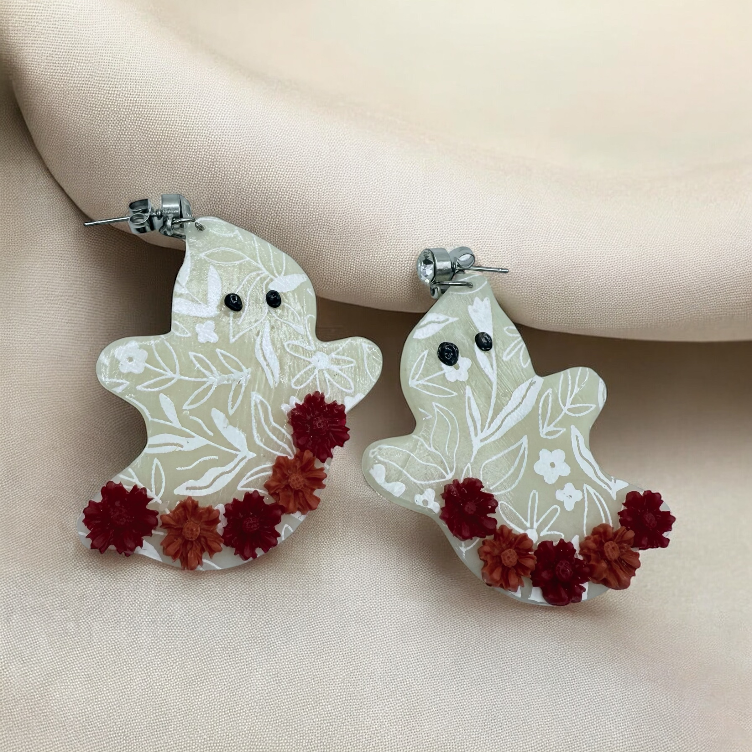 Celebrate Halloween in style with these handmade ghost polymer clay earrings. Due to the handcrafted nature of these earrings, slight