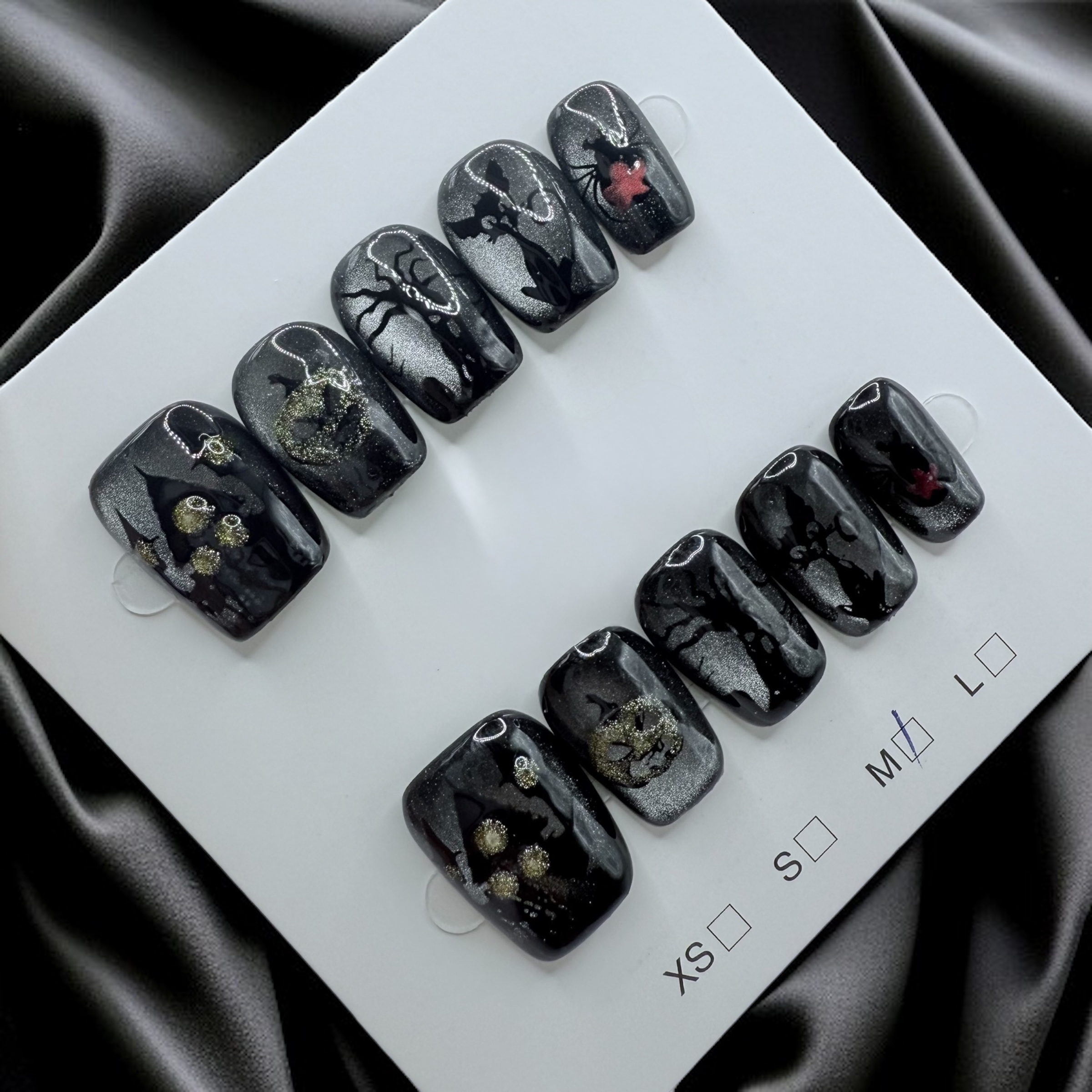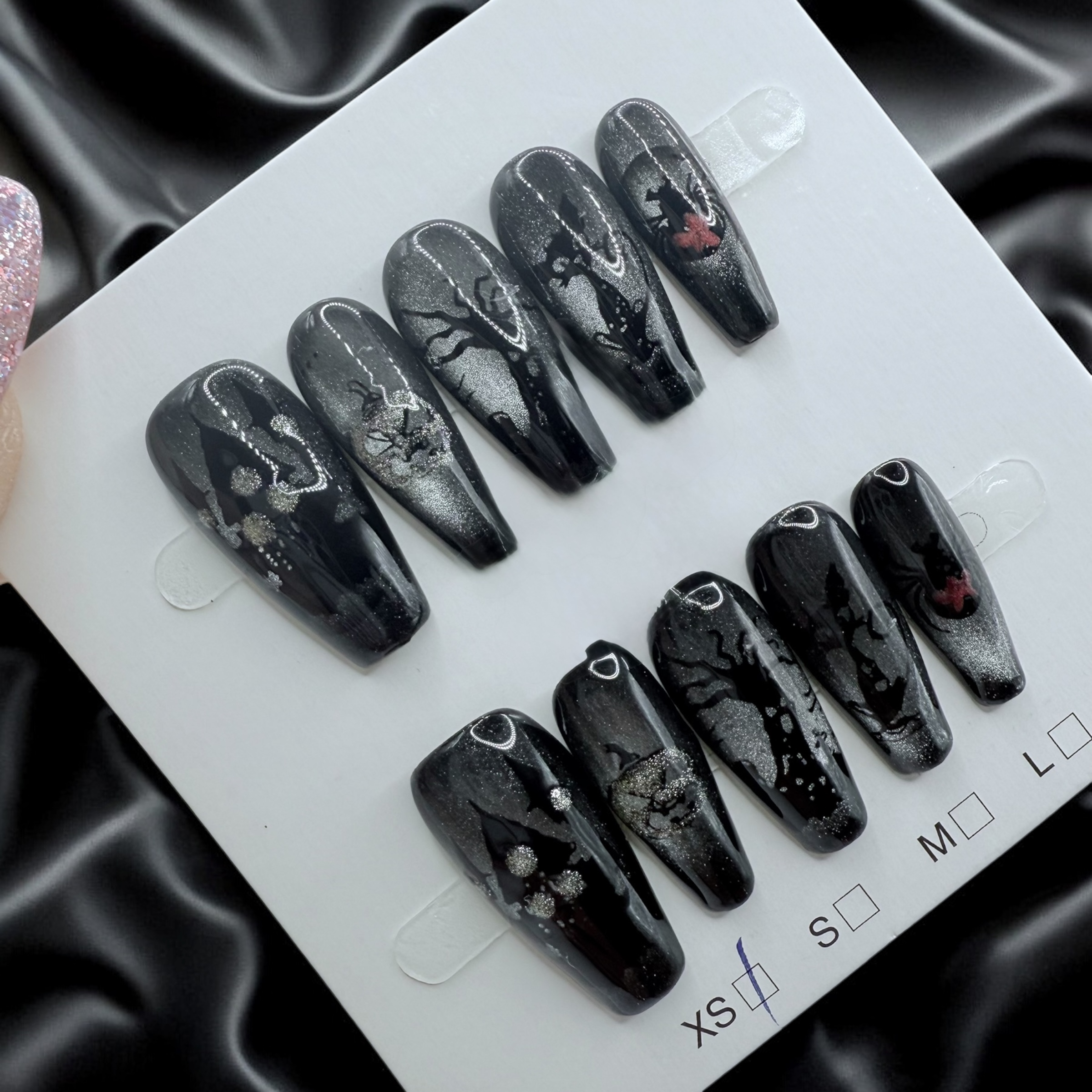 Halloween Cat’s Eye Hunted House Coffin Nails