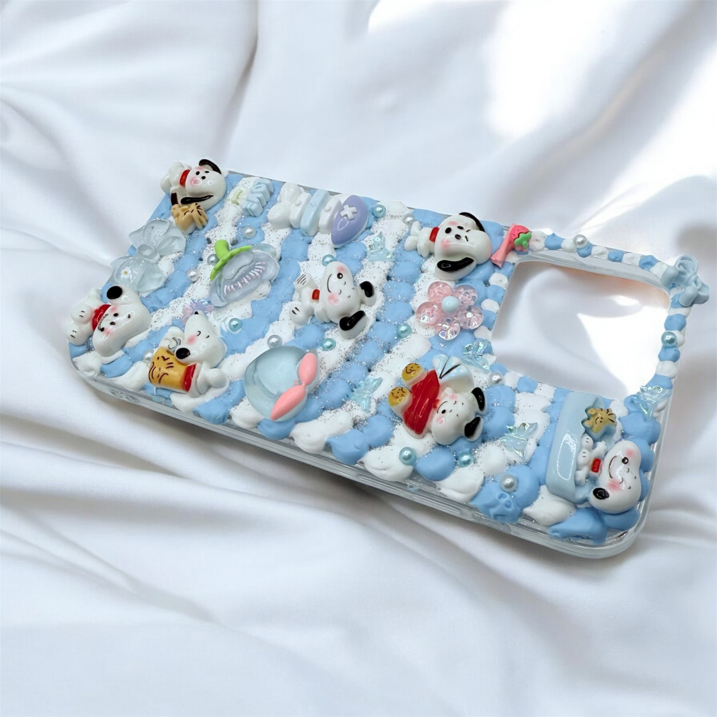 • The I Phone case is handmade with decoden/cream glue and resin charms.